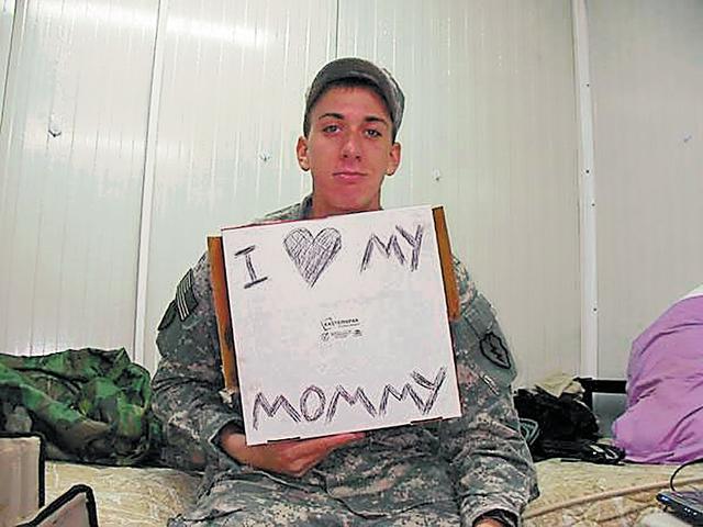 After he deployed to Iraq in late 2007, he sent home a string of comical photos, she said. In one, the soldier is sitting on his bunk in Iraq, holding up a sign that says “I (heart) my Mommy.”