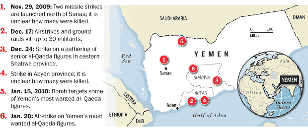 The broad outlines of the U.S. involvement in Yemen have come to light in the past month, but the extent and nature of the operations have not been previously reported. The far-reaching U.S. role could prove politically challenging for Yemen’s president, Ali Abdullah Saleh, who must balance his desire for American support against the possibility of a backlash by tribal, political and religious groups whose members resent what they see as U.S. interference in Yemen.