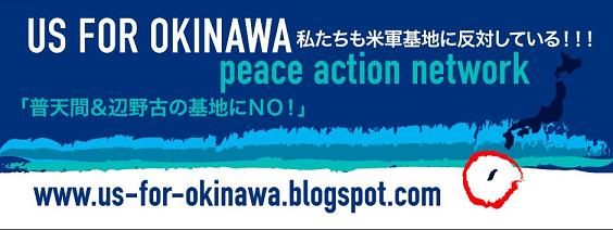 US for OKINAWA is a new peace action network based in Tokyo that was recently formed by U.S., Japanese, Canadian, New Zealand, Australian, Welsh, Mexican and other citizens living in Japan who are concerned about Okinawa. A deliberate double entendre, US may be read both as “us” (you, me, everyone), as well as U.S. (reflecting the proactive stance of Americans in Japan who support a base-free Okinawa).