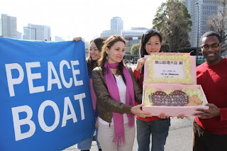 To mark this day, US for OKINAWA and Peace Boat made a big, beautiful heart-shaped chocolate cake for Prime Minister Hatoyama that said “We love you for listening to the people of Okinawa, and for building peace, not bases in East Asia.”